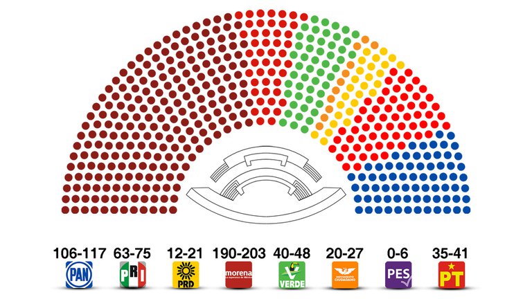 Pero si se suma su resultado al de sus aliados, el Partido del Trabajo (PT) y el Partido Verde (PVEM), se lograría superar la barrera de la mayoría absoluta (251), con un intervalo de entre 255 y 292.