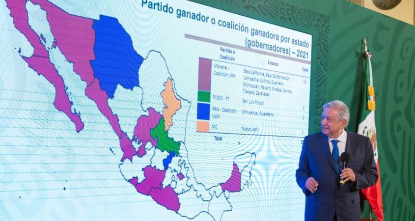 Se habla de que nos frenaron, que no tendremos la mayoría en el congreso, que nos fue remal, fíjense lo mal que nos fue, que hubieron elecciones de gobernador en 15 estados y el movimiento al que pertenezco, el movimiento de la transformación triunfo en 11, nos fue remal, AMLO.