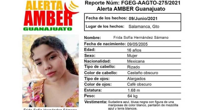 Familiares de la menor Frida Sofía Hernández Sámano, de 16 años de edad, solicitaron el apoyo de las autoridades y la ciudadanía para su localización, por lo que también se activó la Alerta Amber.