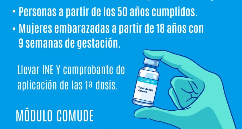 Únicamente habrá dos puntos de aplicación: Estacionamiento “El Cardo” y el Módulo COMUDE con 6 mil dosis en cada lugar; es indispensable que los asistentes acudan con su comprobante de la primera aplicación e INE.