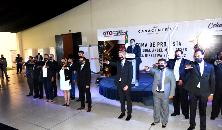 El gobernador del Estado de Guanajuato, Diego Sinhue Rodríguez Vallejo, realizó la toma de protesta a la nueva mesa directiva de la Cámara Nacional de la Industria y la Transformación (CANACINTRA), sede Celaya; durante el evento, el presidente entrante, Miguel Ángel Melo Reyes, destacó que su principal compromiso será participar en la reactivación económica de las empresas afiliadas.