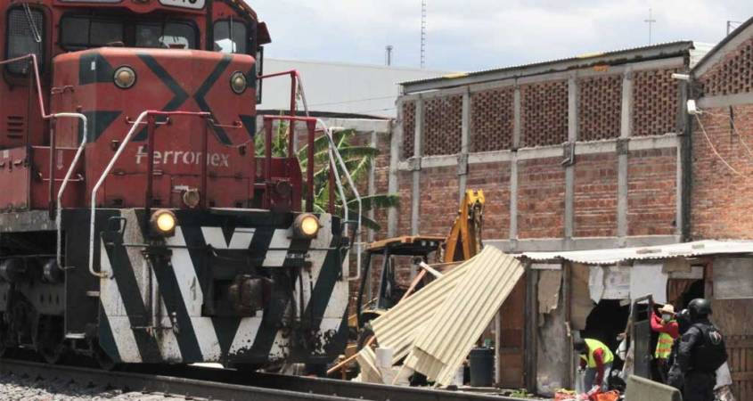 Fue desde las 9 de la mañana de este martes que personal de Ferromex, elementos de Policía Municipal, Protección Civil y de seguridad ferroviaria llegaron a la carretera alterna a Villagrán a desalojar a las familias que habitaban en 12 viviendas ubicadas en la zona; son casas “hechizas” de madera, láminas, algunas edificadas con tabique y cemento.