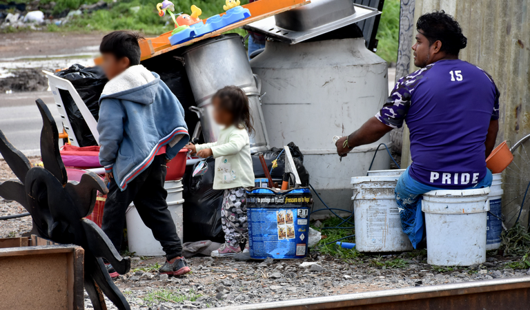 Por la mañana de ayer miércoles, la familia comentó que pasaron la noche bajo la lluvia que había iniciado un día antes, porque no tienen un lugar para vivir, y en las primeras horas decidieron juntar las láminas de sus viviendas y de otras casas para venderlas y comer en estos días.