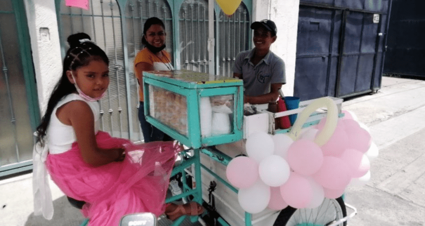Hoy fue un día especial para la familia Fuentes Guerrero, la pequeña Paola, egresó del preescolar y su familia tuvo la grandiosa idea de adornar con globos rosas y carteles el triciclo en el que venden nieve por las calles de Salamanca.