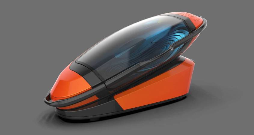 La máquina se llama Sarco, tiene un aspecto futurista que presenta una cápsula sellada similar a un ataúd con paneles transparentes y seasienta sobre una plataforma elevada que se inclina en ángulo.