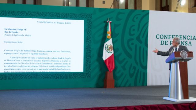 En 2019, López Obrador envió una misiva a la Corona española para solicitar que ofreciera una disculpa a los pueblos originarios de México por los abusos cometidos durante la caída de Tenochtitlán y la Colonia.
