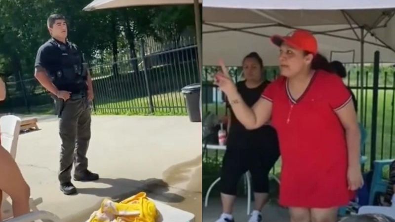 El oficial fue requerido por la encargada del Flex Fitness Center para sacar a las latinas de las instalaciones. El grupo de mujeres estaba disfrutando de un momento de esparcimiento, pero… hubo molestia al momento que este grupo de latinas, entre quienes se encontraban mexicanas, al poner música en español.