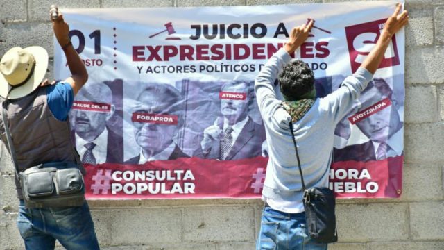 Desde hace días, el dirigente de Morena y los militantes de este partido promueven en giras y en redes sociales la participación en la consulta popular bajo el argumento que es para enjuiciar a los expresidentes, aunque la pregunta que se presentará el 1 de agosto es “¿Estás de acuerdo en que se lleven a cabo acciones con apego al marco legal para esclarecer las decisiones políticas tomadas en el pasado por los actores políticos y garantizar la justicia y derechos de las posibles víctimas?”, a lo que los ciudadanos deberán responder “sí” o “no”.