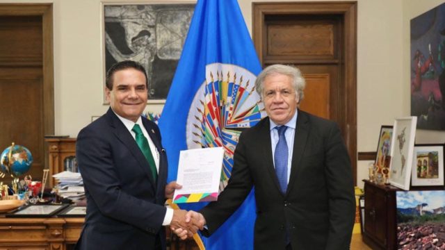 “Ante el riesgo de que la delincuencia organizada siga aumentando su presencia al grado de elegir al próximo presidente de México en las futuras elecciones del 2024, solicito a la OEA que no deje solo a México en este escenario de riesgo que llevamos a la configuración paulatina de un narcoestado”, se menciona en el documento que entregó el mandatario a Luis Almagro Lemes, secretario General de la OEA.