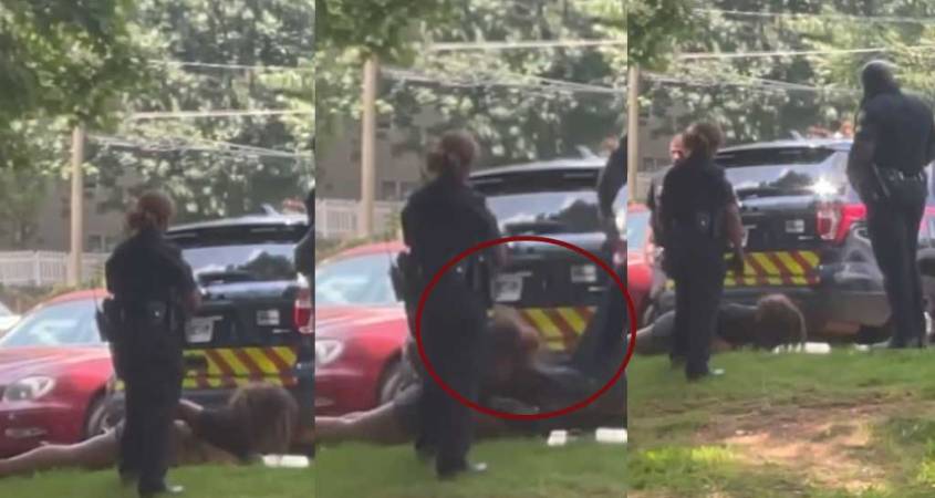 La mujer fue detenida, esposada y tirada al suelo y luego de un “mal comportamiento”, uno de los oficiales la pateó en la cara.