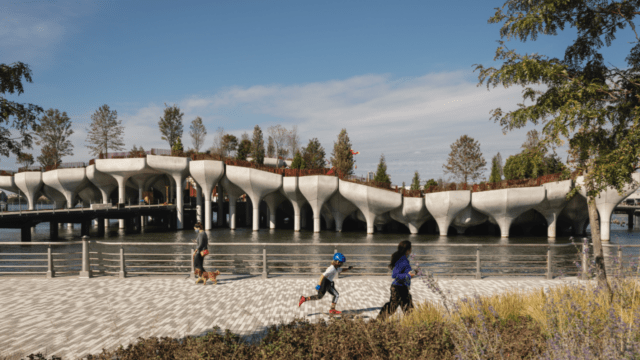 Así fue que Little Island fue inspirada en esos restos, y los arquitectos buscaron diseñar la nueva estructura alrededor de los pilotes ya existentes, que surgieron como columnas de hormigón que hoy se extienden fuera del agua.