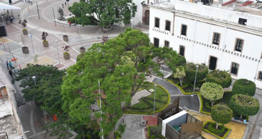 Una de estas obras es la modernización de la Plaza Abasolo, con pasillos a base de concreto hidráulico, vegetación, árboles, locales comerciales, bancas de descanso, como parte de la transformación de la zona centro que inició hace 20 años.