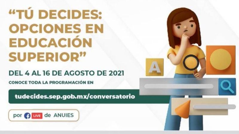 La Secretaría de Educación Pública (SEP) puso en marcha el programa “Tú Decides: Opciones en Educación Superior”, con el objetivo de informar a las y los interesados la disponibilidad de espacios en las instituciones de ese nivel educativo, en escuelas públicas y privadas, así como los requisitos para su ingreso.