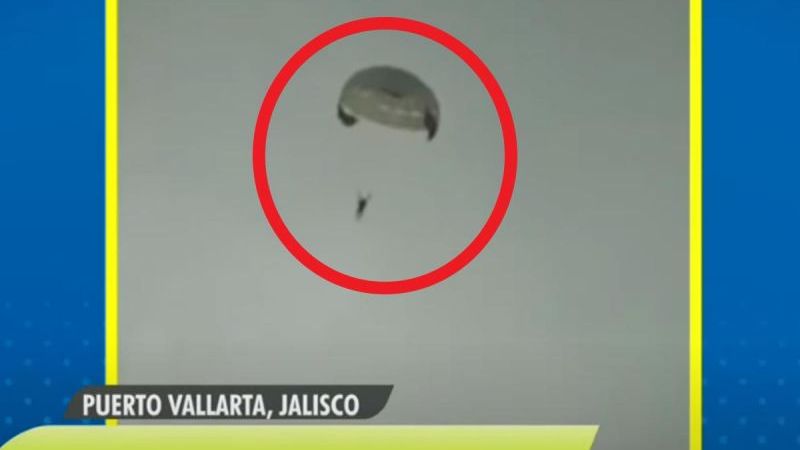 Imágenes muestran el momento exacto en que se suelta la línea de la lancha de un parachute y una turista que surcaba el cielo de Puerto Vallarta en el estado de Jalisco queda volando a la deriva.