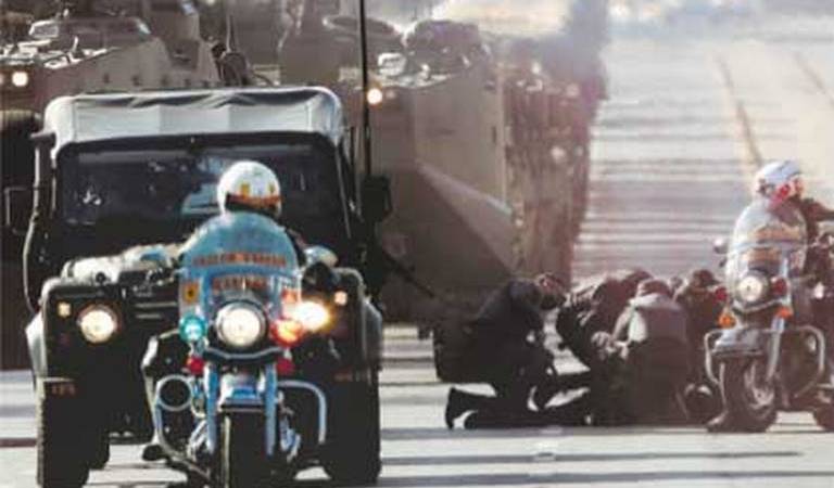 El convoy de vehículos militares blindados de las tres Fuerzas Armadas desfiló por la Explanada de los Ministerios, una céntrica avenida de la capital brasileña en la que se encuentran todos los edificios del poder público, incluido la Presidencia y el Congreso.