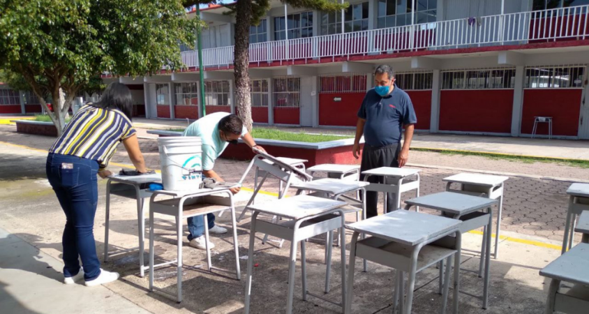 Padres de familia, docentes y directivos, iniciaron las jornadas de limpieza en las escuelas del municipio previo al inicio del próximo ciclo escolar y ante la posibilidad de regresar a clases presenciales.