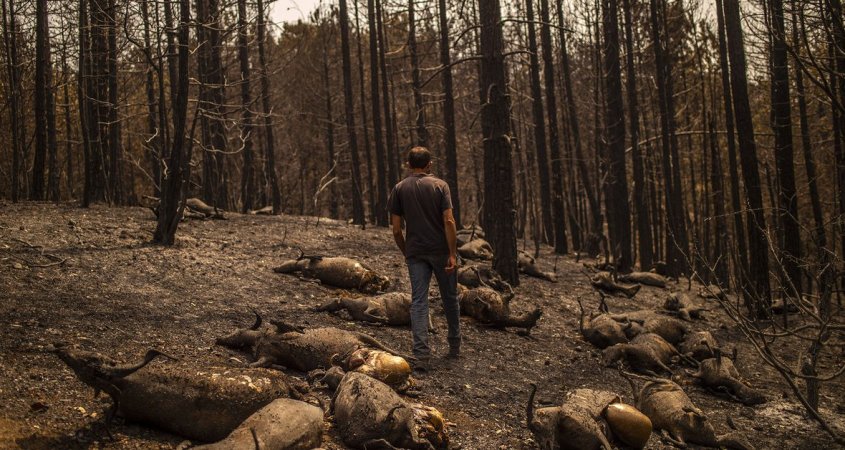 Más de 50.900 hectáreas resultaron dañadas en el norte de Eubea, según los mapas del Servicio de Gestión de Emergencias Copérnico de la Unión Europea. Montañas enteras de bosques, principalmente de pinos, han quedado reducidas a páramos de tocones ennegrecidos, mientras que las plantaciones de olivos e higueras y los viñedos también fueron destruidos.