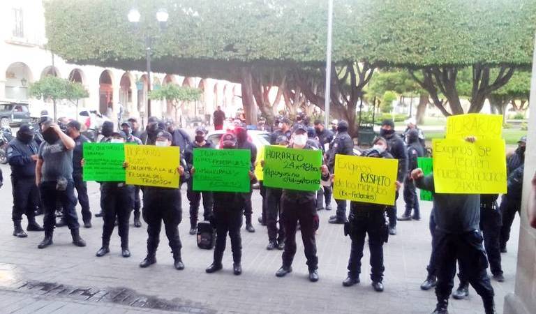Los manifestantes exigen horarios de 24 X 48 horas, ya que a algunos los hacen trabajar 34 horas seguidas, además de respeto e igualdad, ya que a ellos les quitan sus armas y equipo de trabajo para proporcionarles a los ex federales.
