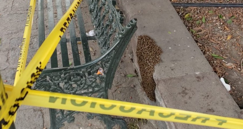 Al arribar detectaron el enjambre en una de las jardineras a una altura aproximada de 30 centímetros, por lo que delimitaron el área para evitar que la gente se acerque y ocurra un accidente.