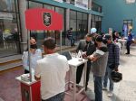 Al arribar detectaron el enjambre en una de las jardineras a una altura aproximada de 30 centímetros, por lo que delimitaron el área para evitar que la gente se acerque y ocurra un accidente.