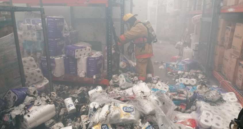 Al supervisar el establecimiento, señalaron como posible causa del incendio el calentamiento de un refrigerador que estaba en contacto directo con estantes de papel higiénico y otros artículos que provocaron la combustión; no hay personas lesionadas.