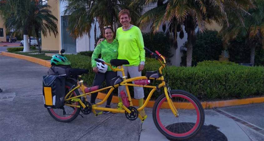 El matrimonio de exploradores se encuentra en medio de una hazaña nunca antes realizada en México: recorrer el país de extremo a extremo abordo de su bicicleta doble que además de acercarlos como pareja encontraron el mejor transporte para conocer y disfrutar cada uno de los pueblos que han visitado y conocido su cultura, es un medio ambiente de ecológico.