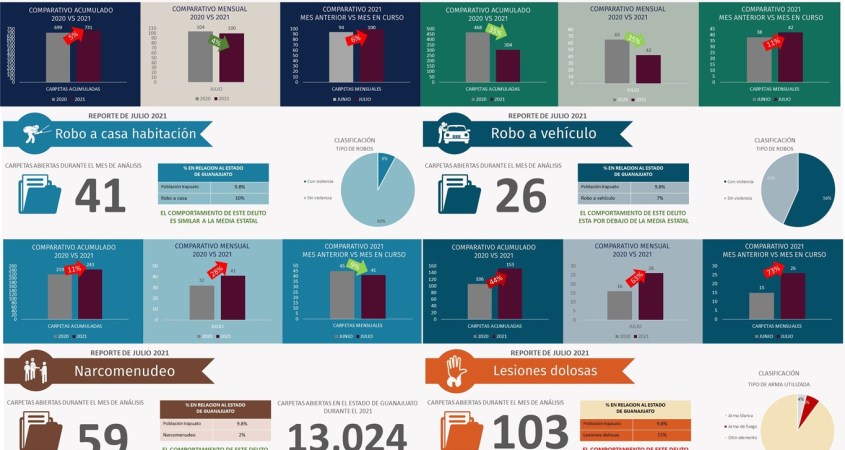 • Julio 2020 vs Julio 2021 aumentó las lesiones dolosas en un 6%
