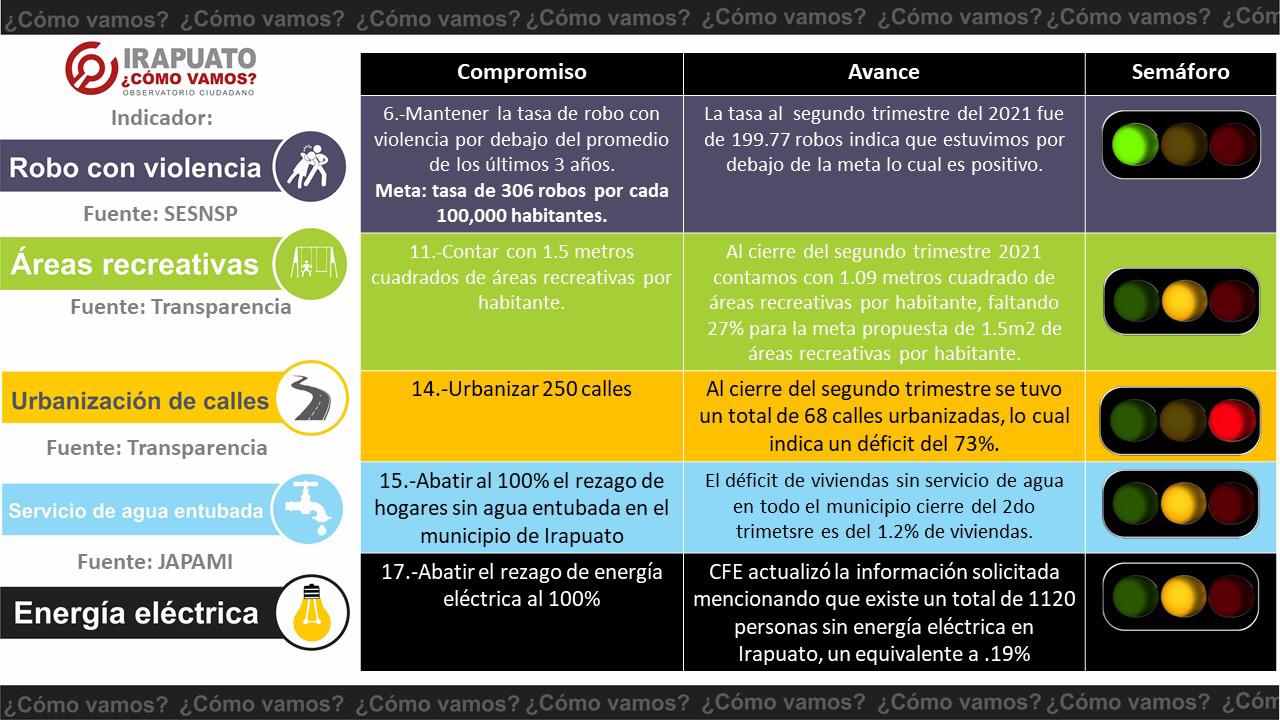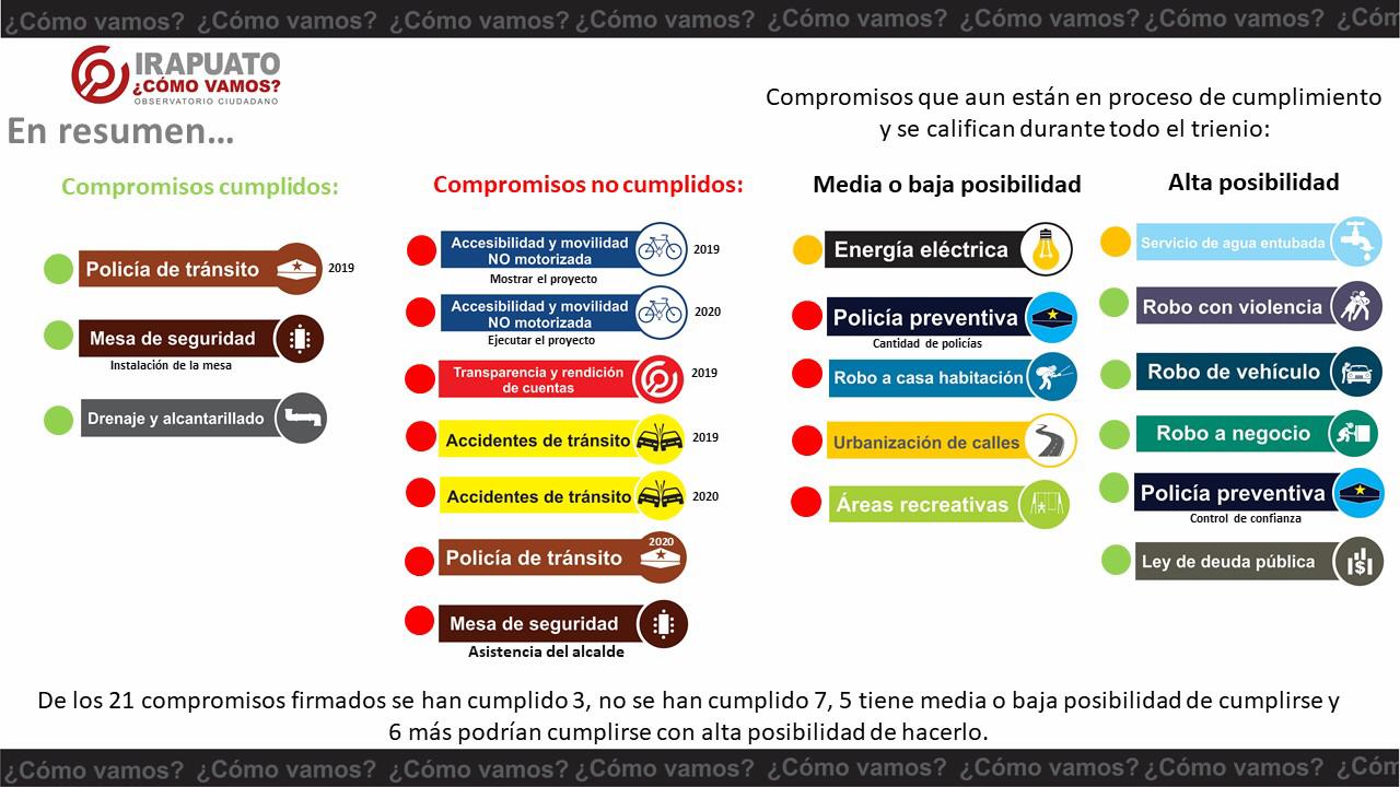 Este impreso que también se encuentra en su versión digital en la página oficial del observatorio (www.irapuatocomovamos.org) contiene toda la información que se fue publicando de manera mensual y trimestral por parte del observatorio ciudadano, lo que permite tener una visión más amplia de cada uno de los temas de la agenda del observatorio los cuales se relacionan directamente con la calidad de vida de las personas en nuestra ciudad.