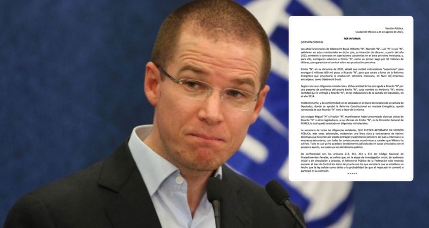 La Fiscalía General de la República (FGR) dio a conocer una versión pública en la que acusa al panista Ricardo Anaya de recibir recursos de la compañía Odebrecht, entregados a funcionarios mexicanos (concretamente Emilio Lozoya) para que fueran distribuidos a manera de sobornos entre legisladores y con ello se aprobara la reforma energética que envió al Congreso el ex presidente Enrique Peña Nieto.
