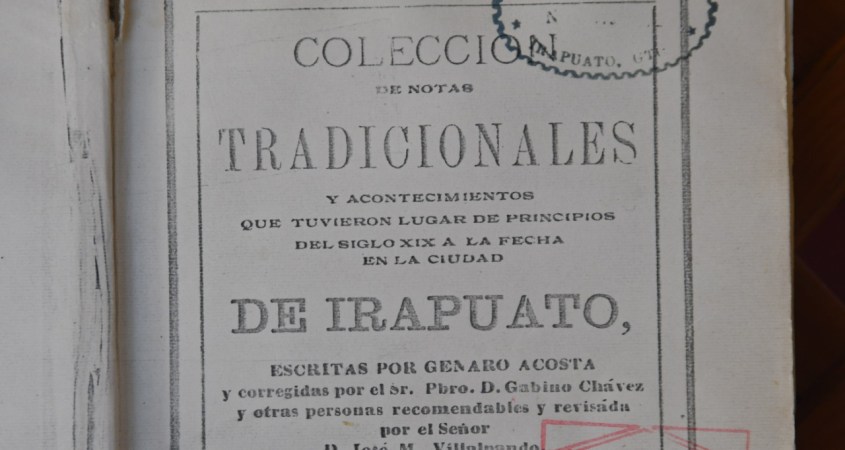 Jorge Conejo, investigador del Archivo Histórico Municipal, compartió que la dependencia cuenta con una copia del libro “Colección de Notas Tradicionales y acontecimientos que tuvieron lugar en principios del siglo XIX a la fecha en Irapuato”.