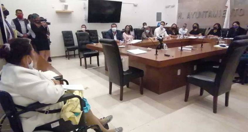Al finalizar la sesión ordinaria de ayuntamiento de este lunes, Alejandra Luna llegó a la sala de cabildo en silla de ruedas acompañada por su familia, donde solicitó al pleno una repuesta pronta a su solicitud que se encuentra desde hace unas semanas en la comisión de medio ambiente y asistencia social.