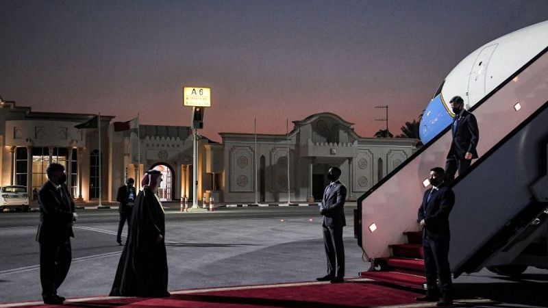 El avión de Blinken aterrizó en Doha poco antes de las 18H00 locales.
