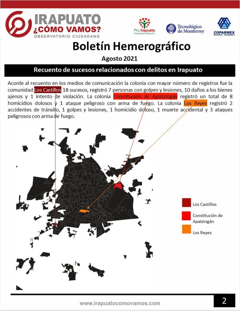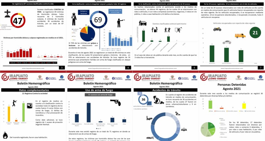 El Observatorio ciudadano Irapuato ¿Cómo vamos?, presenta el Boletín Hemerográfico del mes de agosto 2021.