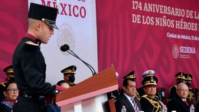 “Que sea este evento una invitación para que con nuestros actos colaboremos con la grandeza de México. Que nadie tenga duda: hoy, como ayer, los cadetes del Heroico Colegio Militar refrendamos que continuaremos el legado de los Niños Héroes aceptando los desafíos y refrendando con cada acción el amor y la lealtad, por el honor de México», destacó el cadete.