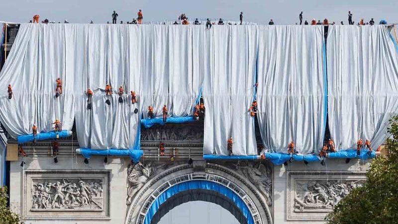 La ciudad de París albergaba desde el jueves una obra de arte monumental construida en torno a un monumento: el Arco de Triunfo, envuelto por completo en tela azul y plateada.