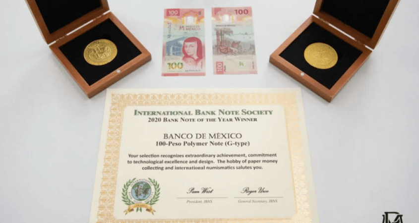 Lo anterior se produce después que el billete de 100 pesos ganó el reconocimiento mundial al “Billete del año 2020” en abril pasado; pero fue hasta esta semana cuando el premio fue entregado.