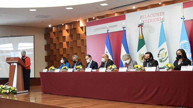 La presentación del Plan de Desarrollo Integral (PDI) por parte de la Comisión Económica para América Latina y el Caribe (Cepal) cuenta con la presencia de Maximiliano Reyes Zúñiga, subsecretario para América Latina y el Caribe de la SRE; Laura Elena Carrillo Cubillas, secretaria ejecutiva de la Agencia Mexicana de Cooperación Internacional para el Desarrollo (Amexcid) de la SRE; Alicia Bárcena Ibarra, secretaria ejecutiva de la Cepal; Félix Ulloa, vicepresidente de la República de El Salvador; Ana García de Hernández, esposa del presidente Juan Orlando Hernández de Honduras; y Pedro Brolo Vila, ministro de Relaciones Exteriores de la República de Guatemala.