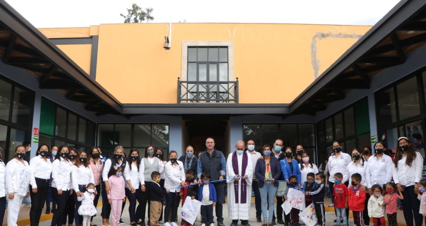 Finalmente, acompañados de las educadoras, personal de la institución y el rector del templo de San Juan de Dios, el padre Dante Gabriel, cortaron el listón inaugural del renovado CADI.