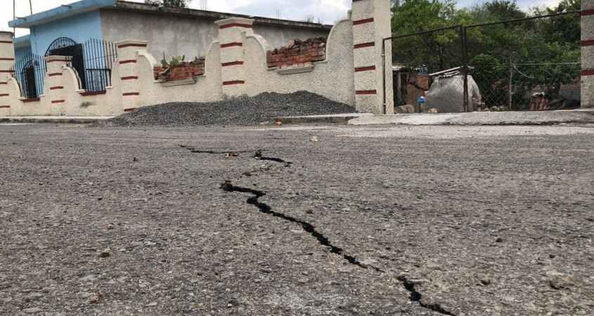 En una de las calles de la comunidad, mostró una grieta de 8 metros de longitud y 4 centímetros de separación, donde incluso, era posible meter la mano de una persona hasta la palma.