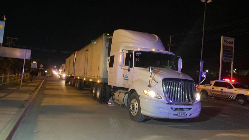 Tres tráileres con doble contenedor se acercaban al punto de inspección militar por lo que los operadores al sentirse perdidos decidieron abandonarlos.