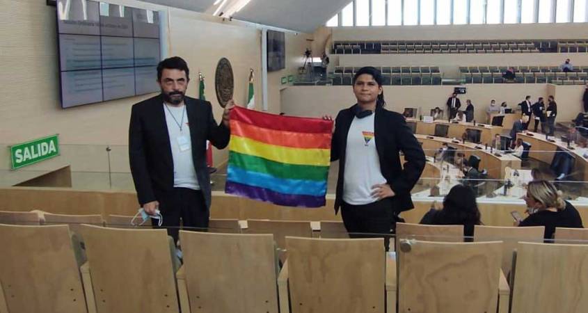 Integrantes de la Agenda LGBT A.C se presentaron en la sesión de Pleno del Congreso del estado para exigir a los diputados locales legislar y aprobar los matrimonios igualitarios.