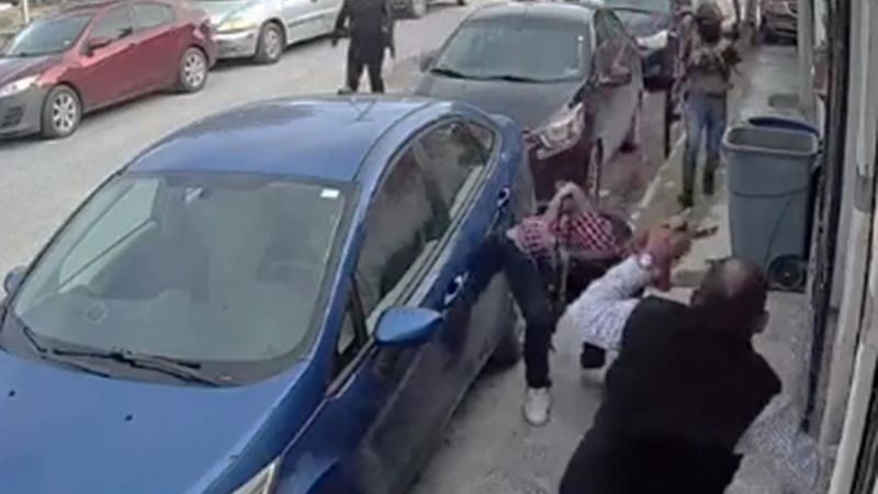 Uno intenta abrir un vehículo, mientras otro le pide las llaves al hombre mayor, éste las lanza y empiezan a cuestionarlo hasta que dice que su auto es el Chevrolet Beat “negro” y les solicita que le den algo que hay en el carro. Uno de los sujetos le avienta un objeto.