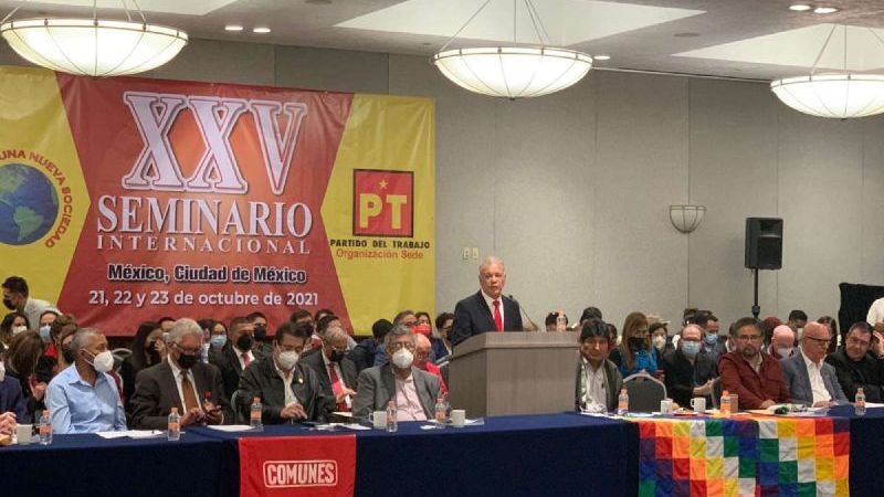 Durante el seminario en la Ciudad de México, en presencia de algunos personajes de la izquierda latinoamericana como los expresidentes de Bolivia y Honduras, Evo Morales y Manuel Zelaya, respectivamente, además de Rodrigo Londoño, ex integrante de las FARC de Colombia, se condenó el bloqueo económico a Cuba y los ataques políticos y económicos de Estados Unidos a Venezuela.