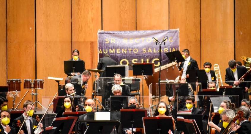 La Orquesta Sinfónica de la Universidad de Guanajuato exigieron un incremento salarial durante su segunda participación en la edición 49 del Festival Internacional Cervantino.