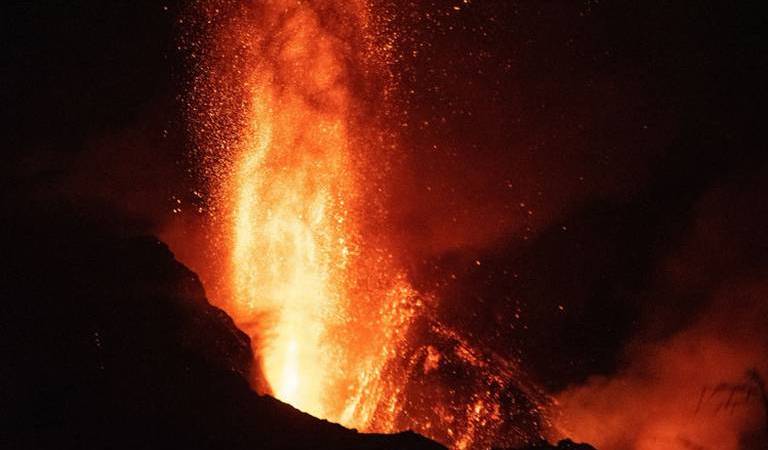 El volcán sufrió anoche una nueva ruptura del cono que ha provocado desbordamientos de magma y desprendimientos, haciendo que una gran cantidad de lava se mueva principalmente hacia el oeste, sobre la colada primigenia y la que discurre por encima de la montaña del municipio de Todoque.