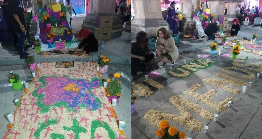 Integrantes del Colectivo La Regla Rota en Salamanca instalaron un altar para honrar a las mujeres asesinadas en la entidad luego que 2020 cerró con 156 muertes y este año 2021 ya suma más de 160.
