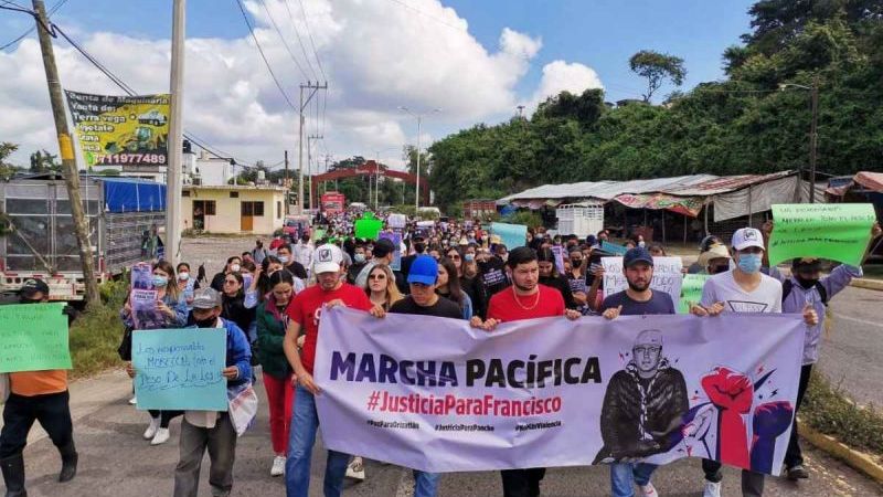 Con carteles en la mano, consignas de “¡Justicia por Francisco!”, “Que la muerte de Francisco no quede impune” y “Cárcel a los asesinos”, habitantes del municipio tomaron las calles el pasado 6 de noviembre para exigir a las autoridadess que no haya impunidad en el caso.