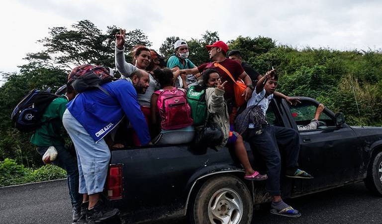 «No podemos ir a caminar, estamos cansados, si nos pudimos subir aquí (en una pipa) nos vamos ya hasta donde alcance» dijo a Efe Manuel, un migrante de Honduras al subir a un tractocamión de doble remolque en la salida de Matías Romero.