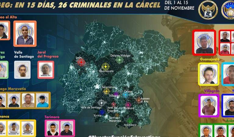 En Villagrán, AARON “N”, “El Moreno”, fue detenido como presunto responsable del asesinato de Ana Gloria “N”, la delegada de la comunidad de Sarabia, municipio de Villagrán, “El Moreno” sería un sicario a las órdenes de “El Dalugas”, cabecilla de cartel delictivo capturado en marzo de 2021.