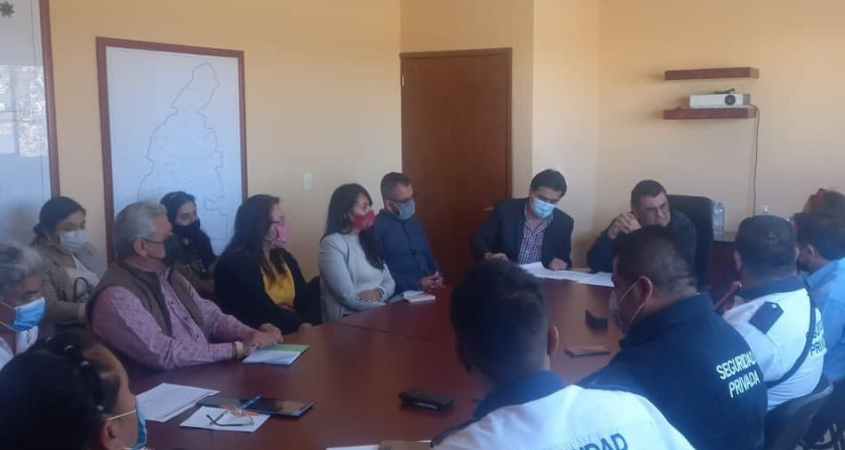 Florencio César Juaristi López y Misael Sauceda, enlace y director jurídico de la dirección de Seguridad Pública —respectivamente—, encabezaron el primer encuentro.